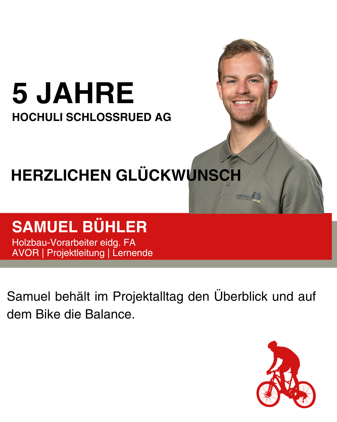 WeiterlesenLieber Samuel Herzlichen Dank für deinen täglichen Einsatz und dein Engagement. Wir gratulieren dir ganz herzlich zu deinem 5-jährigen Firmenjubiläum! Schön, dass du ein Teil unseres Teams bist.