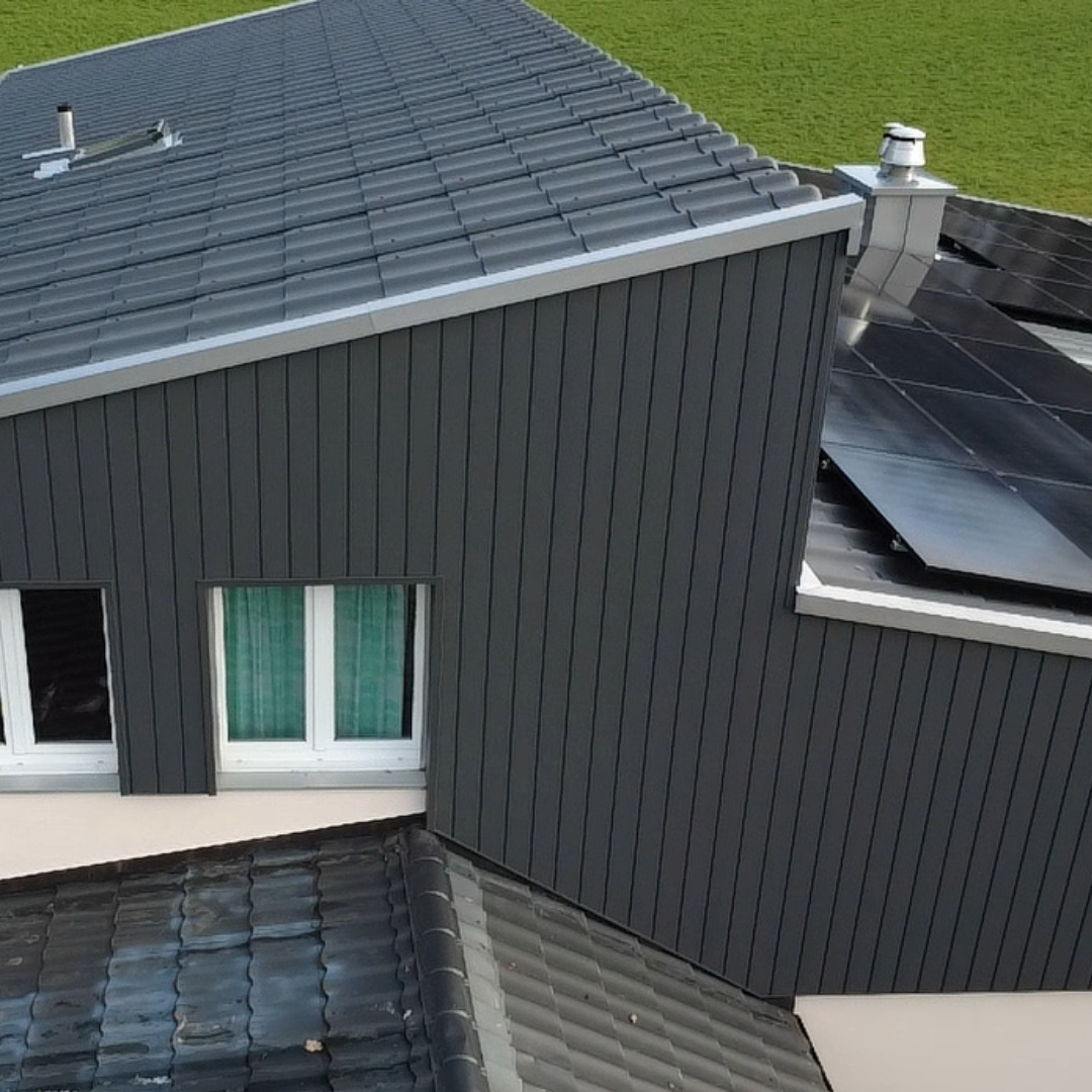 Entdecken Sie die Vorzüge eines PREFA Komplettsystems: Nahtlose Übergänge von Dach zu Fassade sowie vielseitige Kombinationsmöglichkeiten eröffnen nahezu grenzenlose gestalterische Freiheit. Funktionalität, Design und Qualität greifen dabei perfekt ineinander.