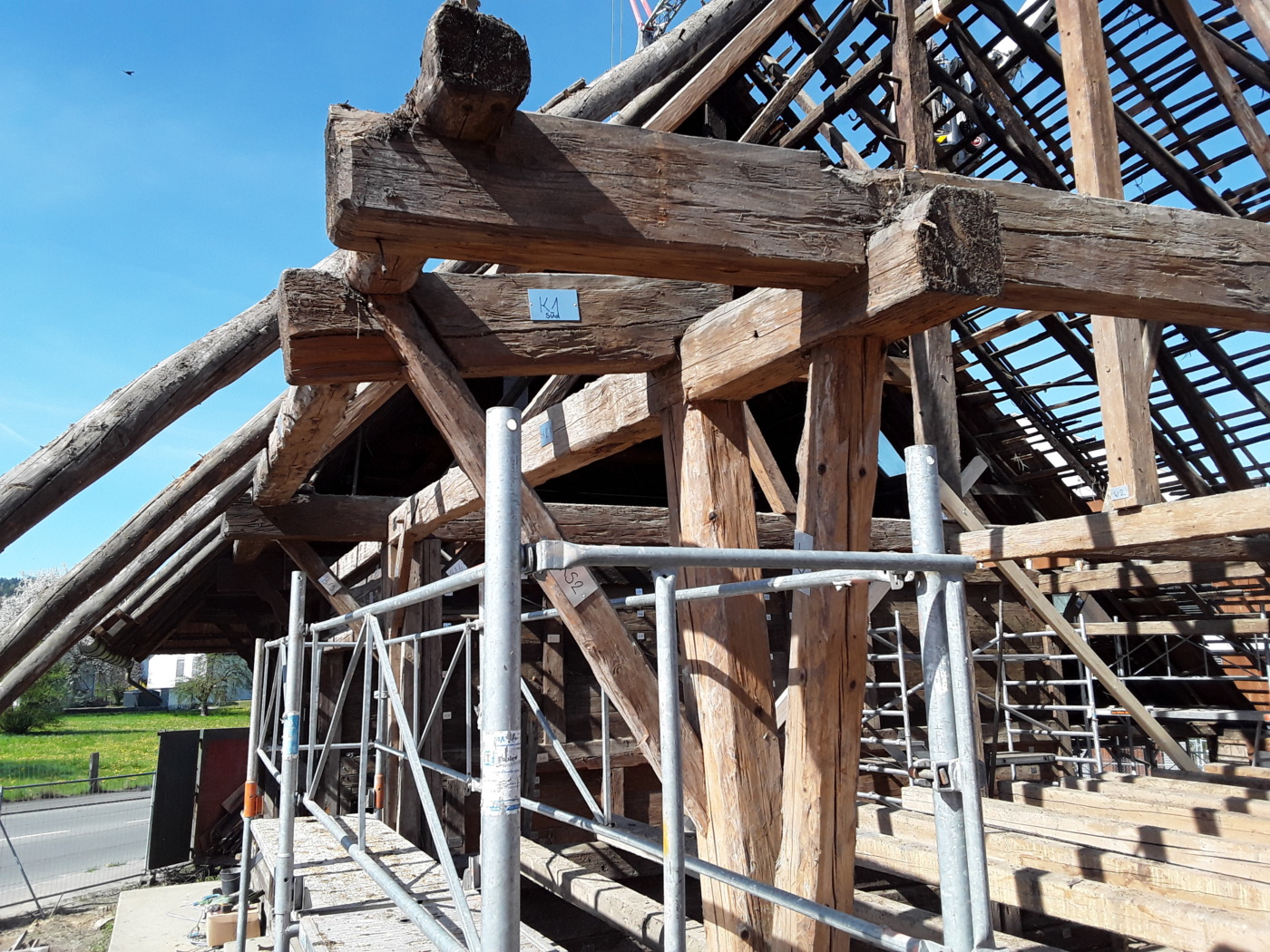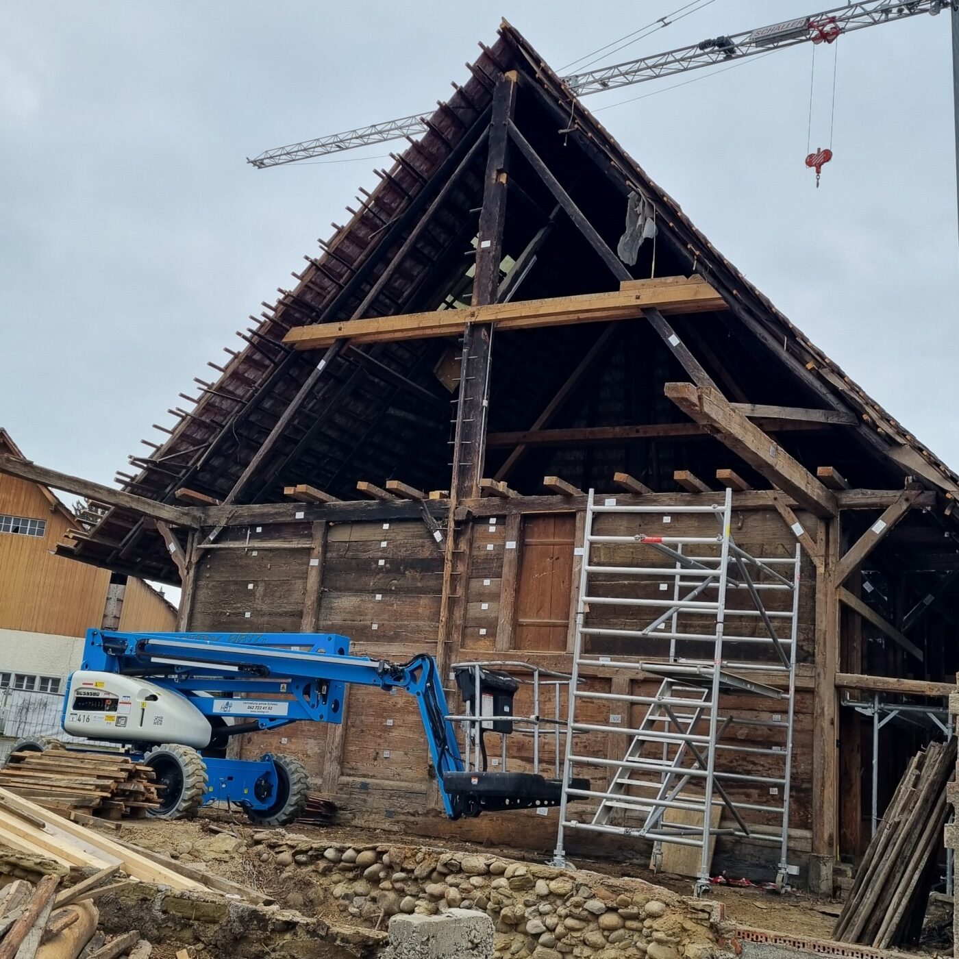 Während der Demontage werden Nutzungsspuren sichtbar, die Einblicke in die Vergangenheit geben. Angearbeitete Holzflächen, Spuren von Beanspruchung oder konstruktive Details zeigen, wie das Gebäude über Jahrhunderte genutzt wurde. Diese Informationen fliessen direkt in unsere Arbeit ein. Sie helfen uns, das Gebäude nicht nur technisch korrekt wieder aufzubauen, sondern auch seine Geschichte weiterzutragen.