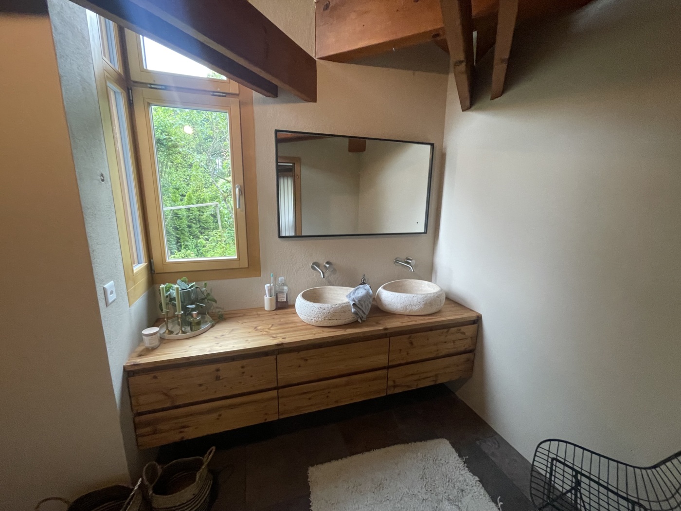 In der Ausführung wurden sämtliche Arbeiten präzise umgesetzt, von der Installation der Sanitäranlagen über den Innenausbau bis hin zu den Oberflächen. Das Ergebnis ist ein modernes Badezimmer mit grosszügiger Dusche, eleganten Waschtischen und hochwertigen Materialien, das sowohl funktional als auch gestalterisch überzeugt.