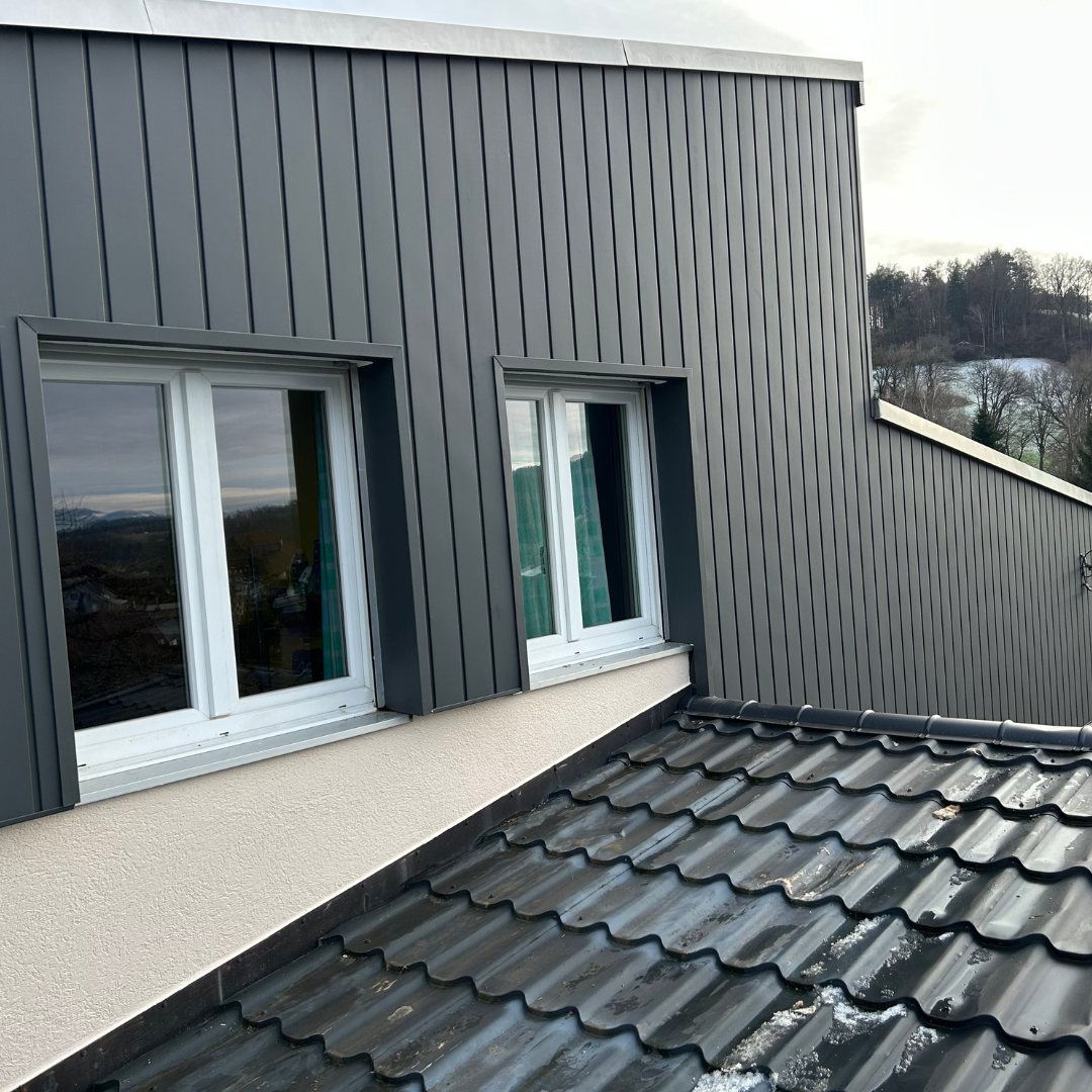 In Reiden realisieren wir eine umfassende Dachsanierung und setzen dabei auf das langlebige PREFA Fassadensystem aus Aluminium. Das Projekt verbindet technische Qualität mit einem modernen, harmonischen Erscheinungsbild.